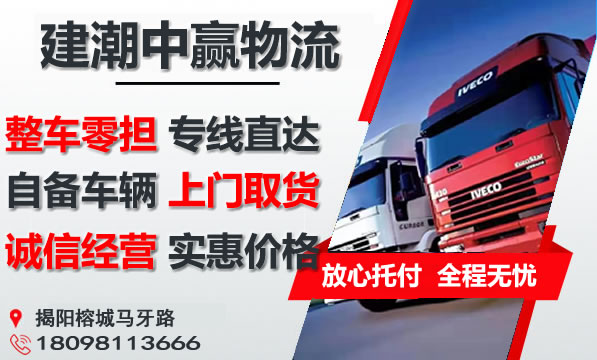同时,建潮中赢物流为了方便广大客户从揭阳到梅州的不同运输时效和物流成本要求,建潮中赢物流特推出揭阳到梅州物流公司相关业务,以此来降低从揭阳到梅州运输的物流成本,提高揭阳到梅州的物流效率,以便为新老客户提供更加完善的从揭阳到梅州的一站式优质物流服务!